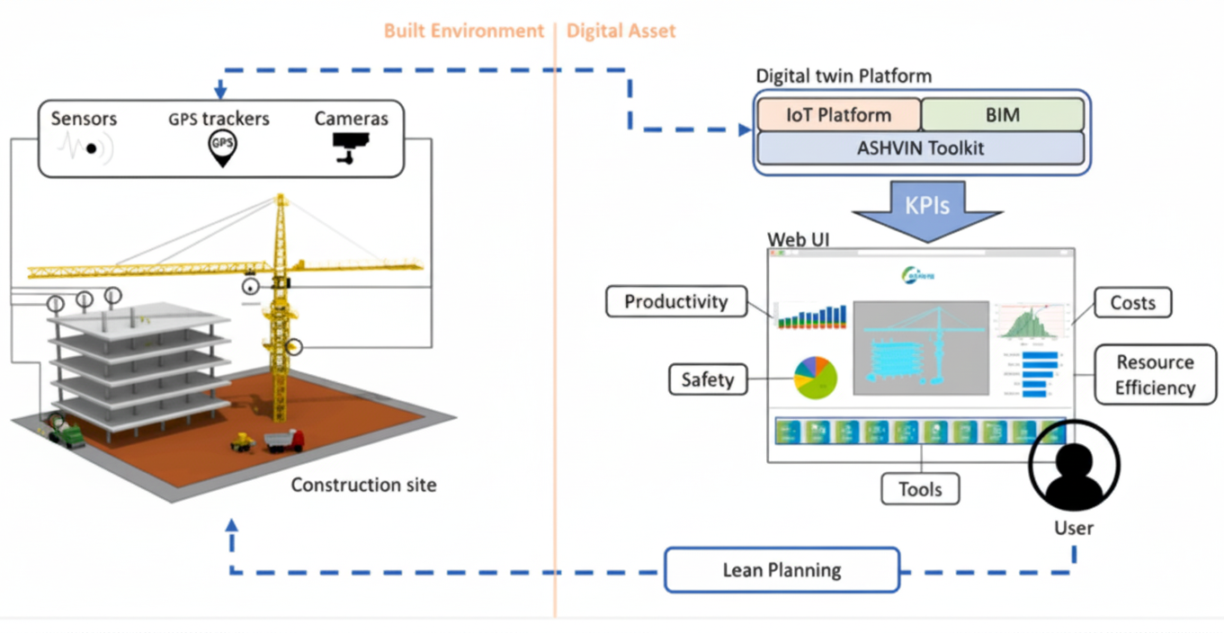All related information layers — including IFC models, IoT data, data processing, and performance indicators — were seamlessly integrated into a web-based Digital Twin platform powered by a knowledge graph system. This enables Construction Managers to make informed decisions, address issues, verify quality, and enhance productivity.